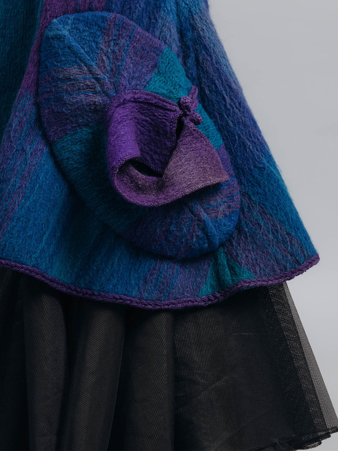 - Middle tier was originally a cape, and the collar now serves as our signature right-hand pocket
