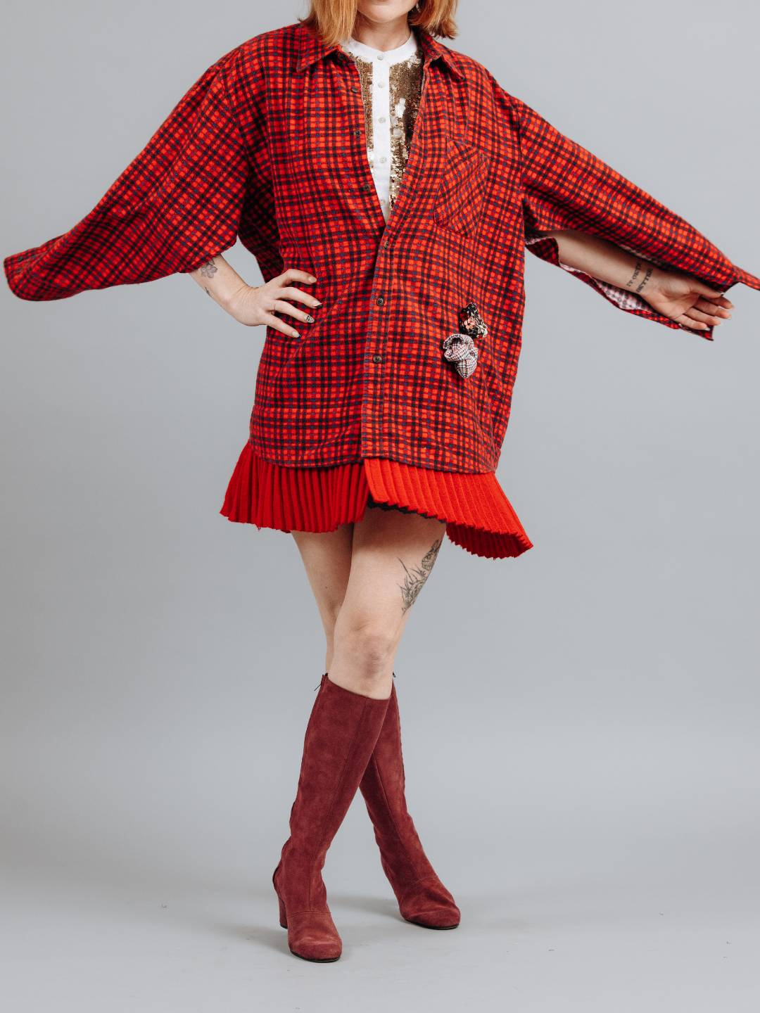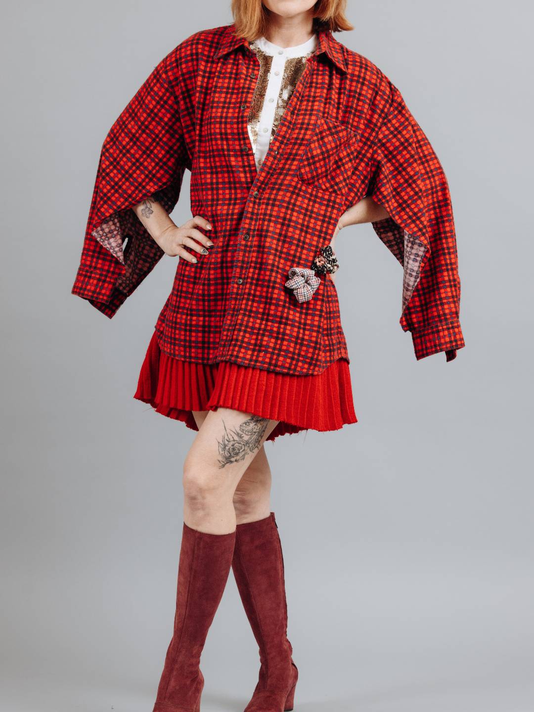 This is another version of our Dress Shirt, but in cape form. Get the look of an over-the-shoulder piece with the ability to use your hands and arms freely. Throw this piece over any ensemble or keep it simple and wear it as a dress.