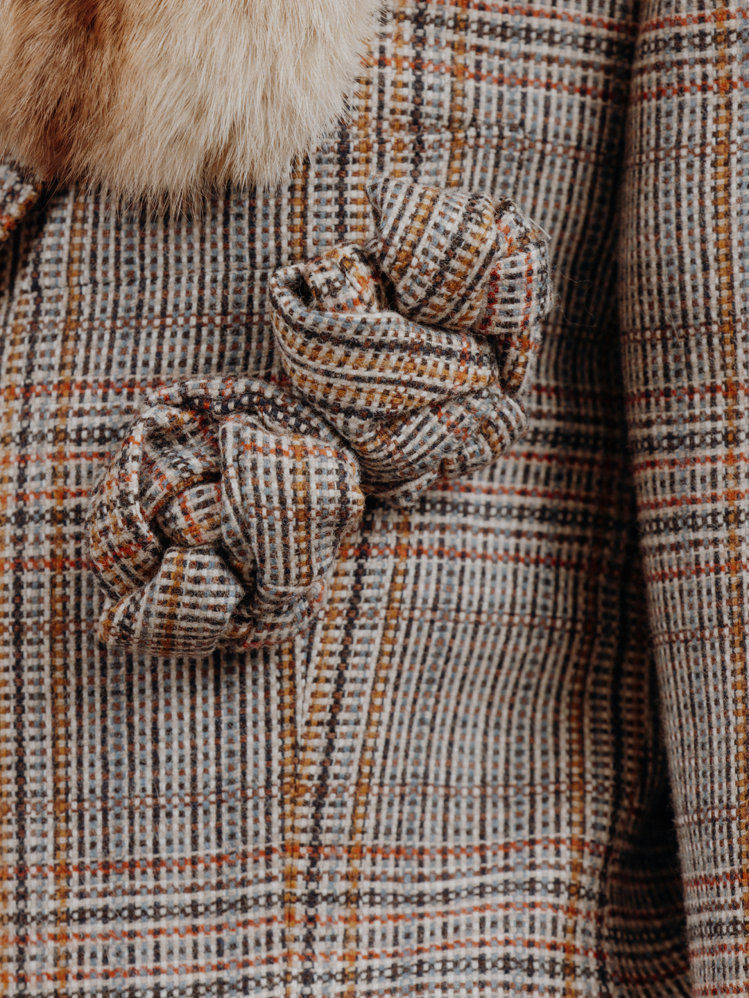 Handmade from leftover fabric (and with love), these rosettes are a vital motif found throughout the collection. Attach them to a blazer, a skirt, or even a choker to add just a touch of romance to your ensemble.